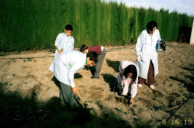 Los alumnos de 2º llegan al huerto ilusionados para sembrar habas.