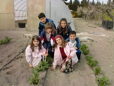 En todas las clases de Primaria se ha colocado un mural, los alumnos/as anotaran el crecimiento de los dos cultivos que actualmente tenemos en el huerto y en el invernadero, habas y cebollas.